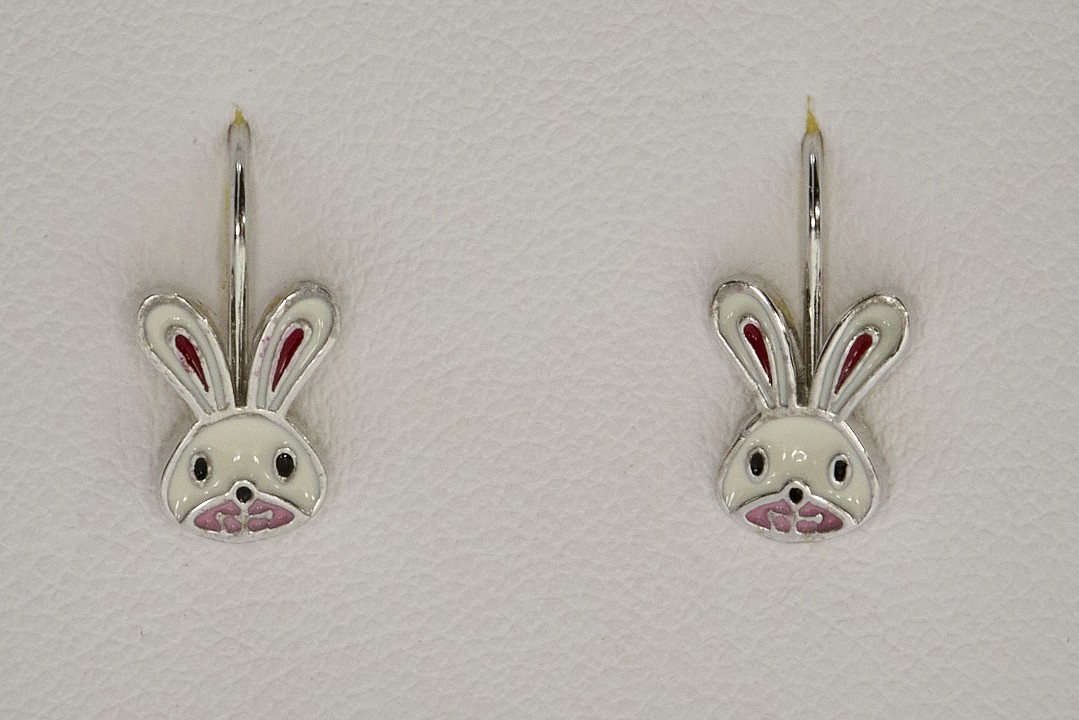 Ezüst gyerek fülbevaló - Nyuszi fehér tűzzománccal