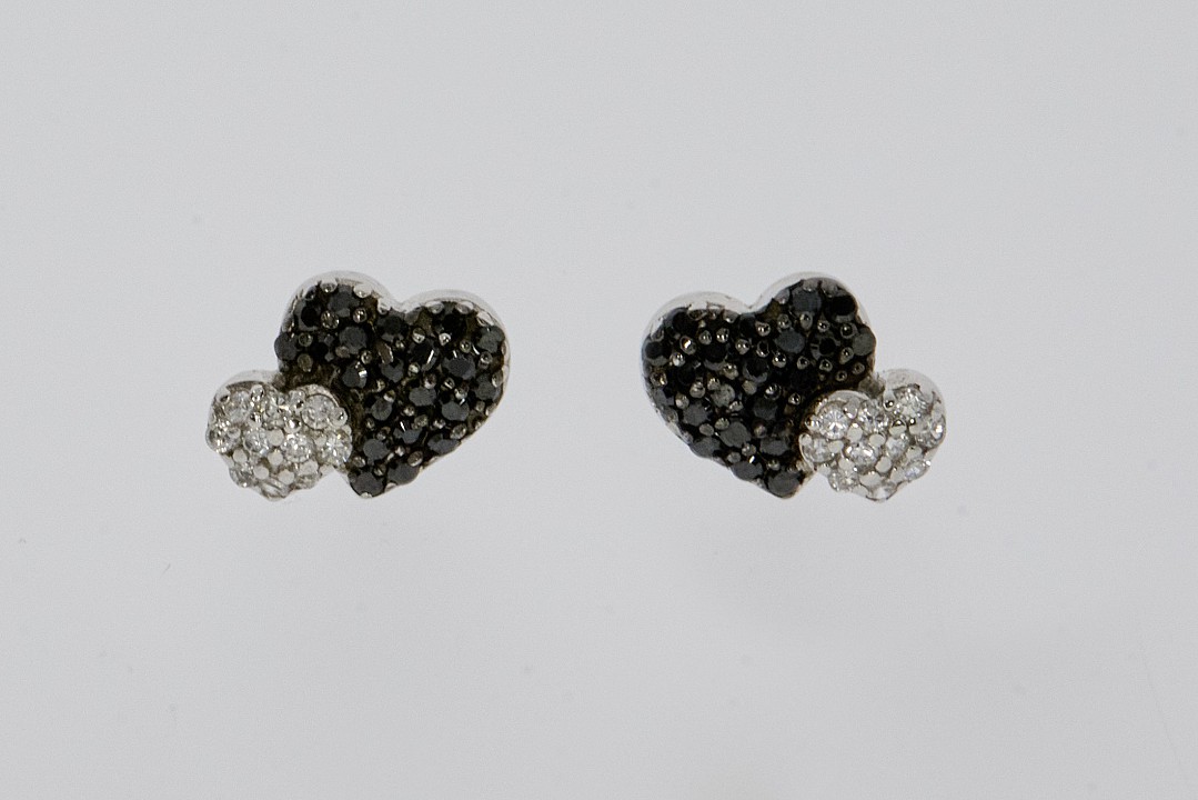 Ezüst fülbevaló - Szív fekete-fehér köves