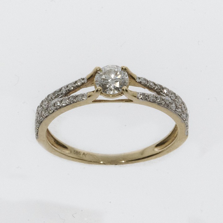 Gyémántot és más drágakövet tartalmazó eljegyzési gyűrűink 14K aranyból készülnek.