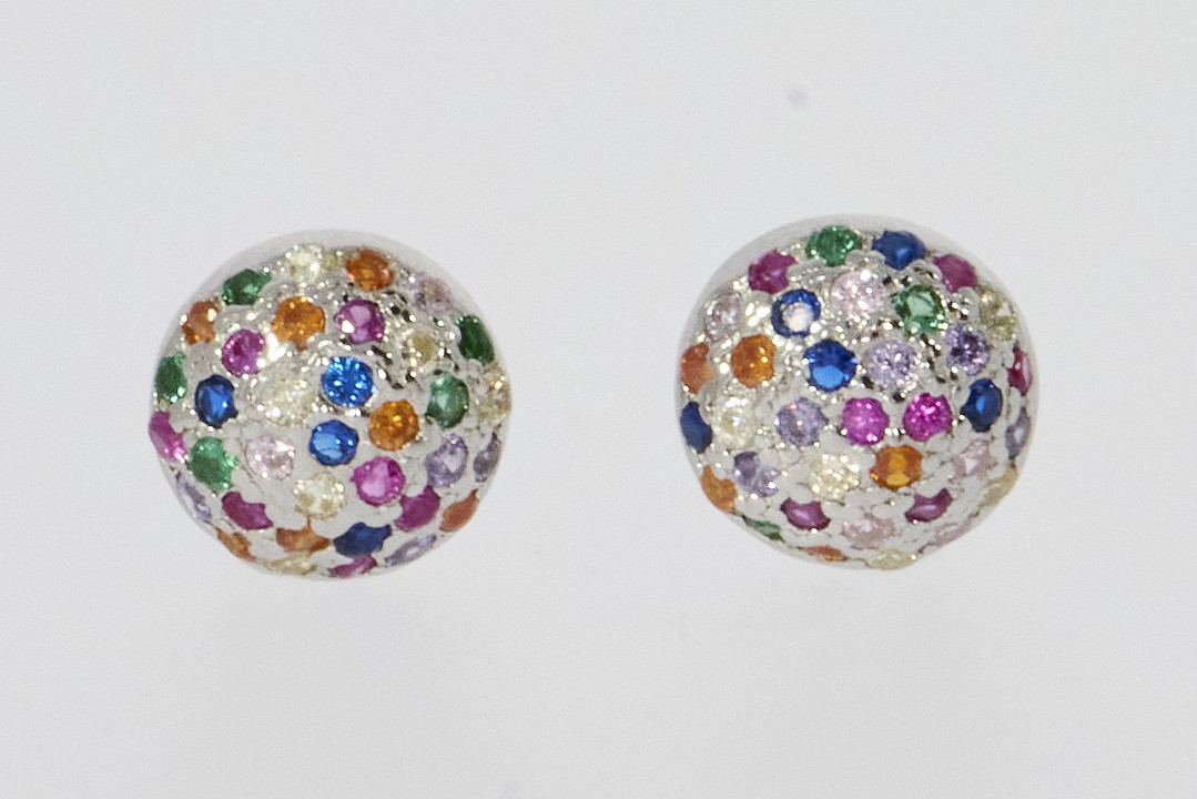 Ezüst fülbevaló- Színes köves