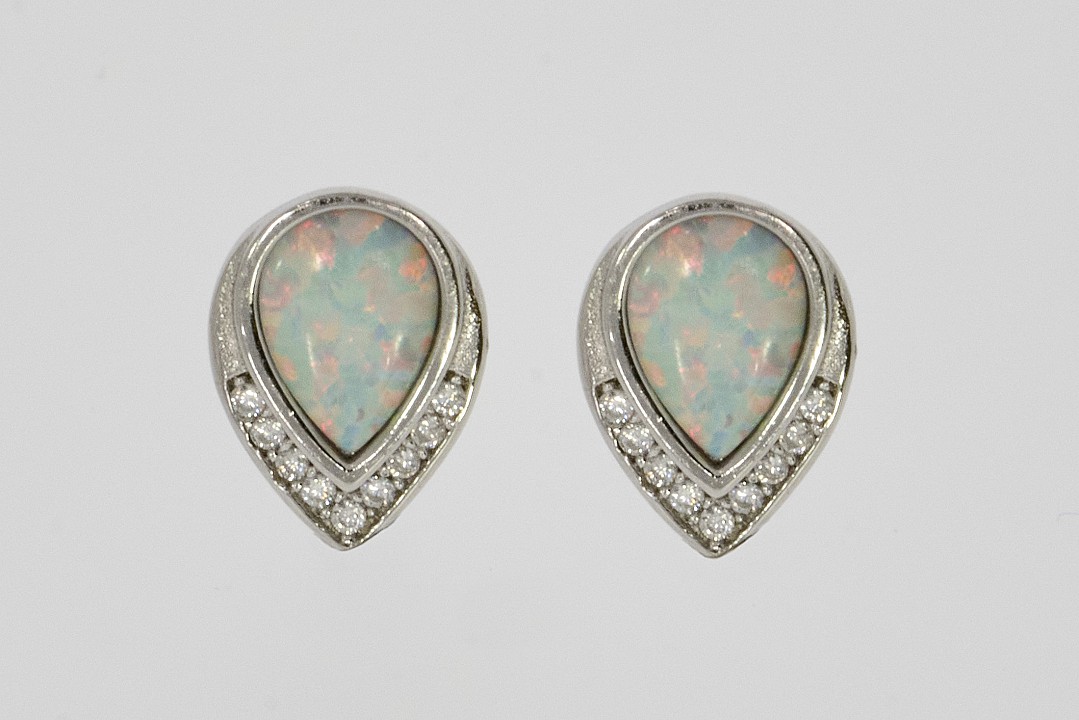 Ezüst fülbevaló- Fehér opál