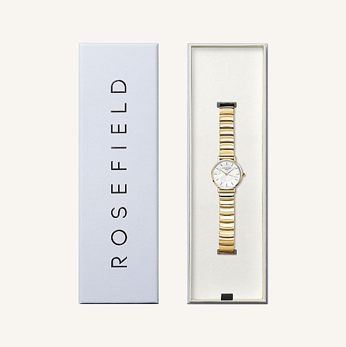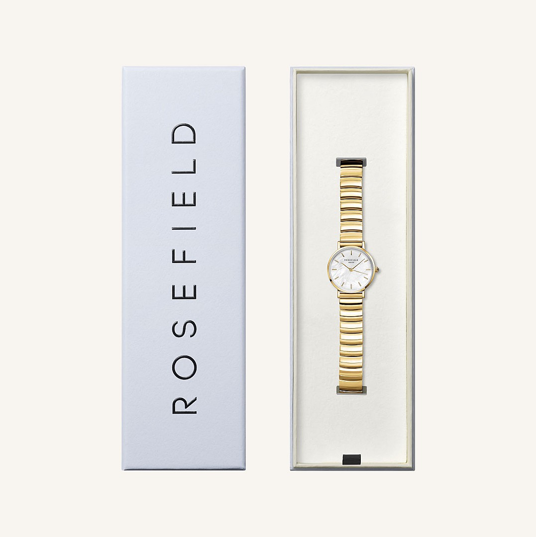 Minőségi 316L rozsdamentes acél vagy valódi bőr szíj, 23 karátos arany vagy rhodium bevonattal ellátott tok, ásvány üveg, gyöngyház és Swarovski kristály díszítésű számlap, kidolgozott részletek - ez mind a Rosefield karórák jellemzője.